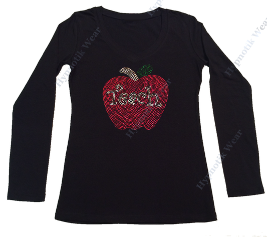 Womens T-shirt with Teacher with Apple in Rhinestones