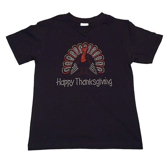 Girls Rhinestone T-Shirt " Happy Thanksgiving with Turkey " Kids Size 3 to 14 Available