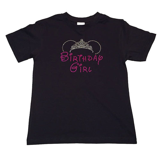 Girls Rhinestone T-Shirt " Pink Birthday Girl w/ Tiara " Sizes 3 to 14 Available