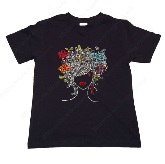 Girls Rhinestone T-Shirt " Girl with Colorful Butterflies " Kids Size 3 to 14 Available