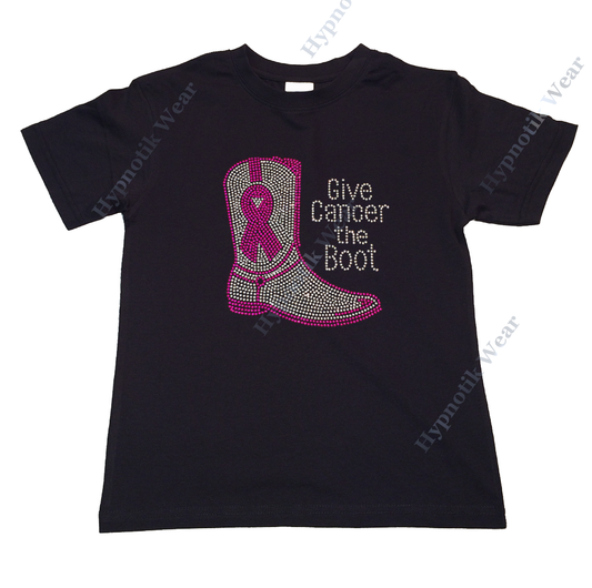 Girls Rhinestone T-Shirt " Give Cancer the Boot with Cancer Ribbon " Kids Size 3 to 14 Available