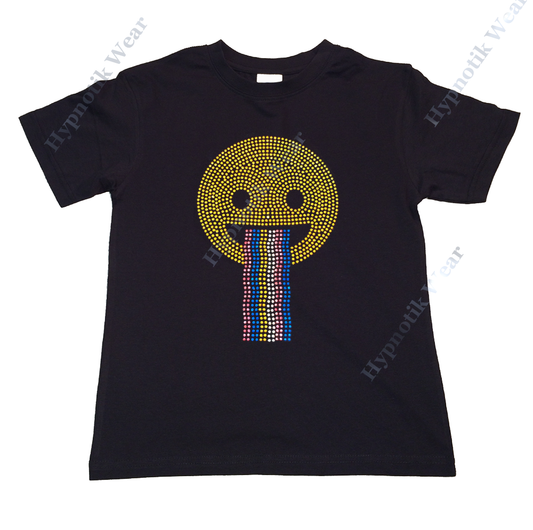 Girls Rhinestone T-Shirt " Happy Face with Rainbow " Kids Size 3 to 14 Available