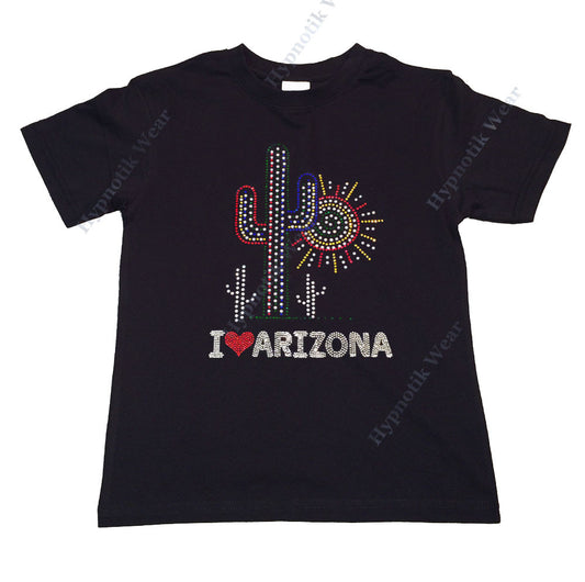 Girls Rhinestone T-Shirt " I Love Arizona " Kids Size 3 to 14 Available