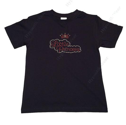 Girls Rhinestone T-Shirt " Pink Little Princess with Crown " Kids Size 3 to 14 Available