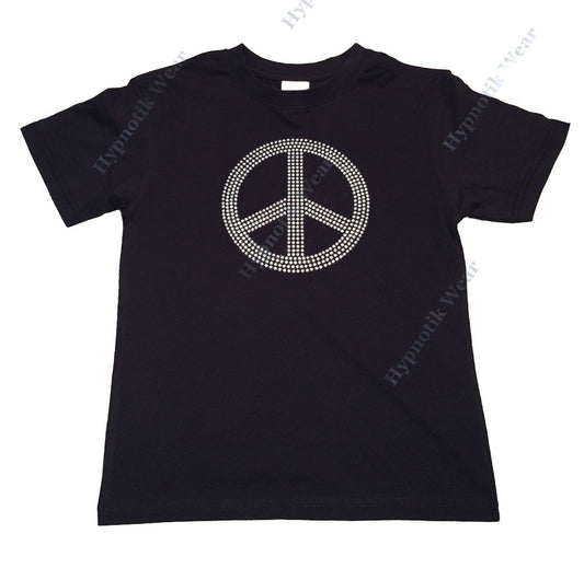 Girls Rhinestud T-Shirt " Silver Peace Sign " Sizes 3 to 14 Available