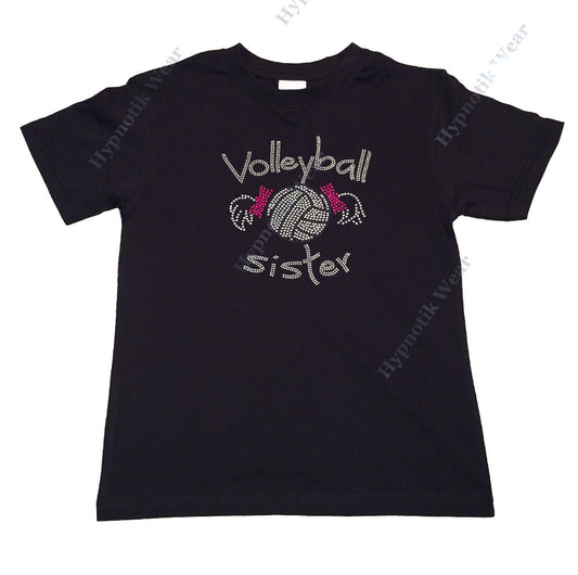 Girls Rhinestone T-Shirt Volleyball Sister w/ Pigtails - Sizes 3 to 14 Available