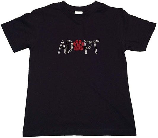 Girls Rhinestone T-Shirt " Adopt with Paw in Rhinestones " Kids Size 3 to 14 Available