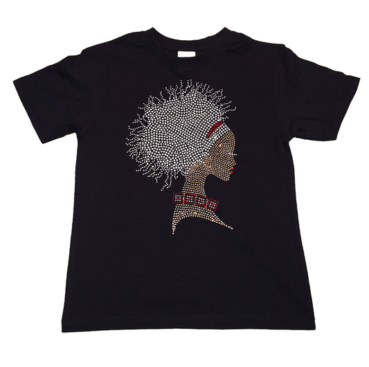 Girls Rhinestone T-Shirt " Afro Dreds Locks Girl in Rhinestones " Kids Size 3 to 14 Available