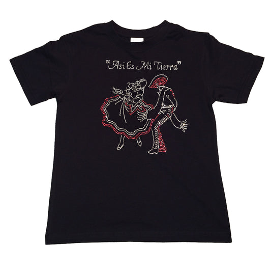 Girls Rhinestone T-Shirt " Asi Es Mi Tierra Folklorico in Rhinestones " Kids Size 3 to 14 Available