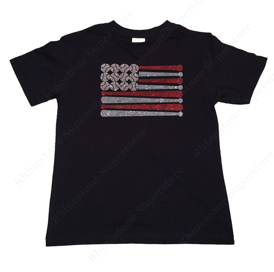 Girls Rhinestone T-Shirt " Baseball Bats & Balls Flag in Rhinestones " Kids Size 3 to 14 Available