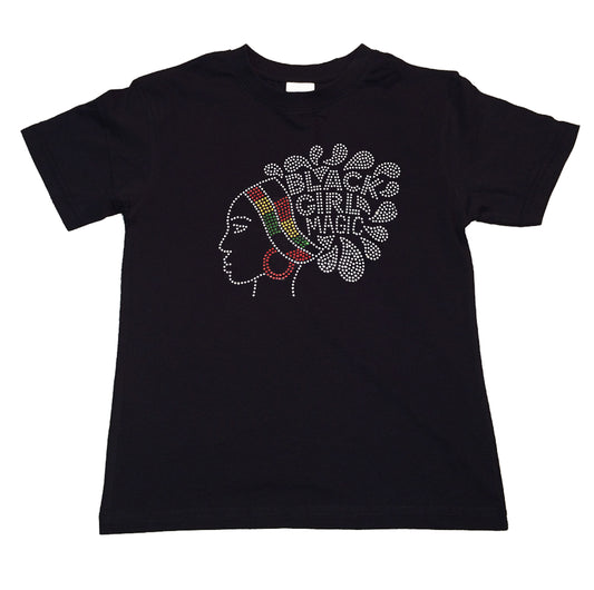 Girls Rhinestone T-Shirt " Black Girl Magic in African Colors in Rhinestones " Kids Size 3 to 14 Available
