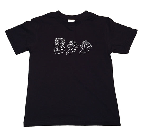 Girls Rhinestone T-Shirt " Boo Ghost Halloween in Rhinestones " Kids Size 3 to 14 Available