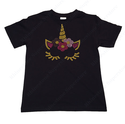 Girls Rhinestud T-Shirt " Colorful Unicorn Face in Rhinestud " Kids Size 3 to 14 Available