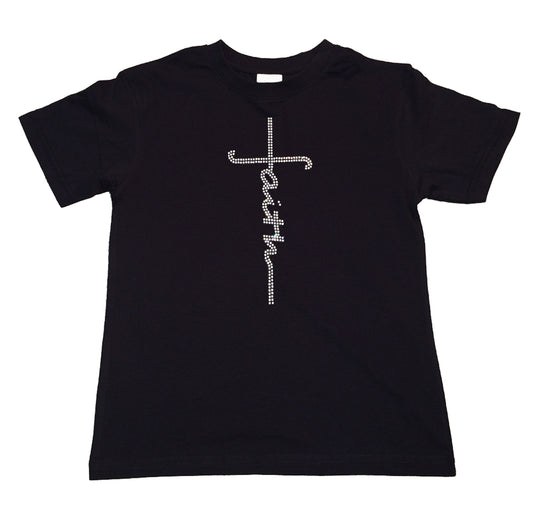 Girls Rhinestone T-Shirt " Faith Script Cross in Rhinestones " Kids Size 3 to 14 Available