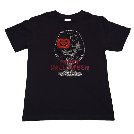 Girl's Rhinestone T-Shirt " Happy Halloween Cup with Pumpkin & Witch "