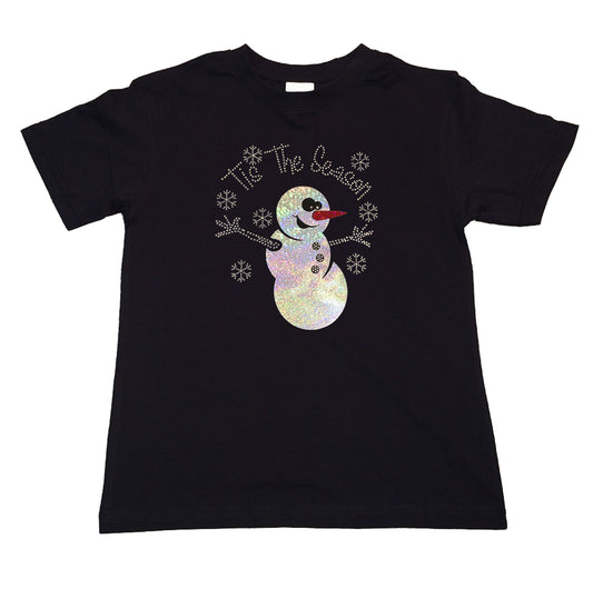 Girls Rhinestone T-Shirt " It's the Season Snowman in Rhinestones " Kids Size 3 to 14 Available