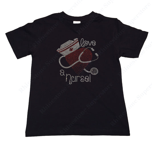 Girls Rhinestone T-Shirt " Love a Nurse in Rhinestones " Kids Size 3 to 14 Available