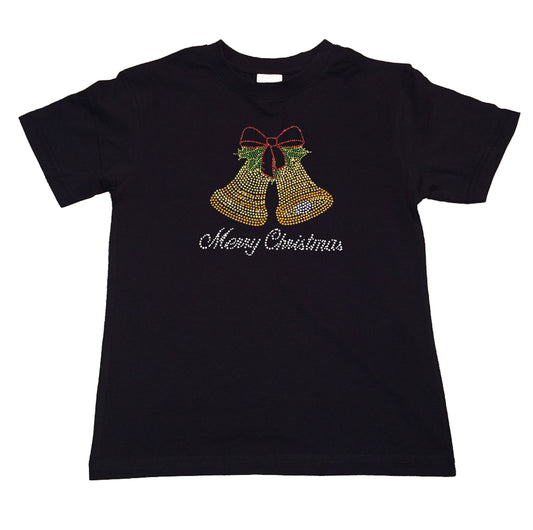 Girls Rhinestone T-Shirt " Merry Christmas Bells in Rhinestones " Kids Size 3 to 14 Available
