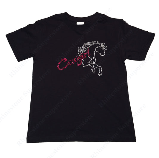 Girls Rhinestone T-Shirt " Pink Cowgirl with Horse in Rhinestones " Kids Size 3 to 14 Available