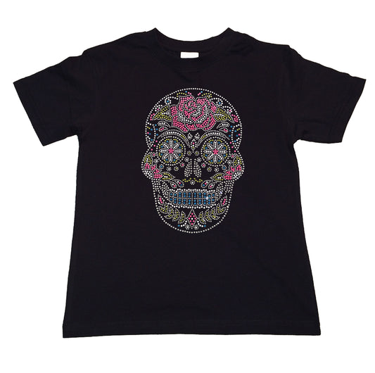 Girls Rhinestone T-Shirt " Sugarskull with Flower in Rhinestones" Kids Size 3 to 14 Available