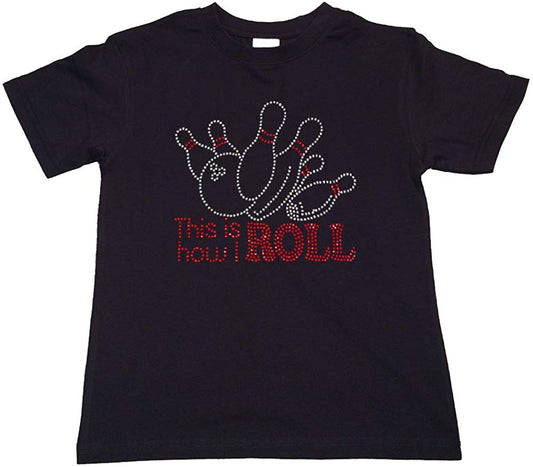 Girls Rhinestone T-Shirt " This is how we Roll Bowling in Rhinestones " Kids Size 3 to 14 Available