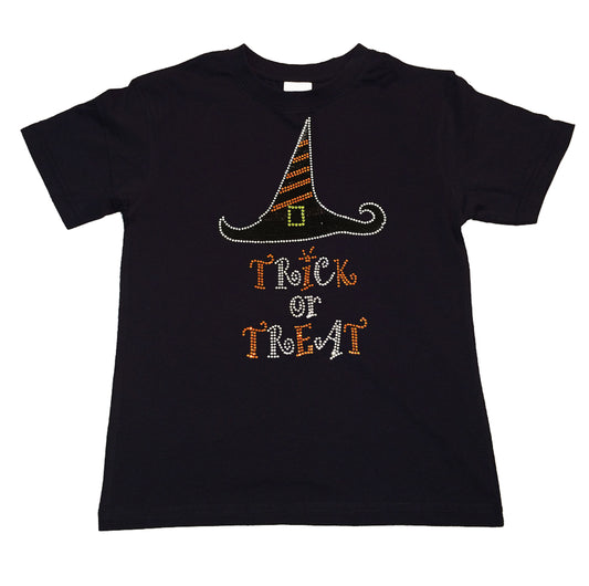 Girl's Rhinestone T-Shirt " Trick or Treat with Witch Hat " for Halloween