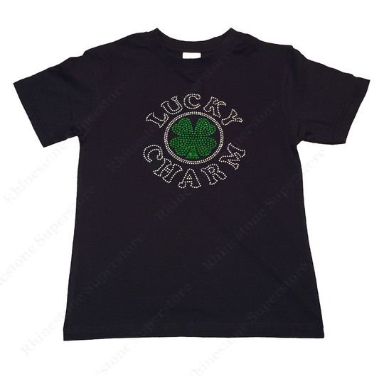 Girls Rhinestone T-Shirt " Lucky Charm " Size 3 to 14 Available Saint Patrick's Day, 4 Leaf Clover