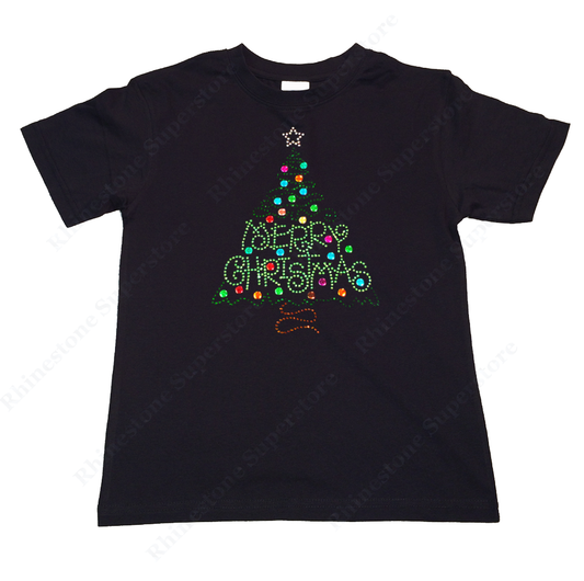 Girls Rhinestone T-Shirt " Merry Christmas Green Tree " Size 3 to 14 Available