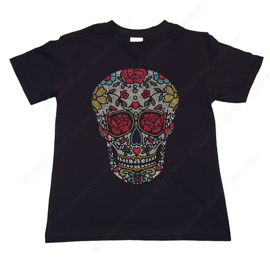 Girls Rhinestone T-Shirt " Sugar Skull with Roses " Size 3 to 14 Available