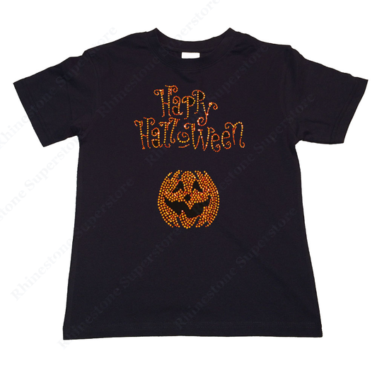 Girls Rhinestone T-Shirt " Happy Halloween w/ Pumpkin " Kids Size 3 to 14 Available
