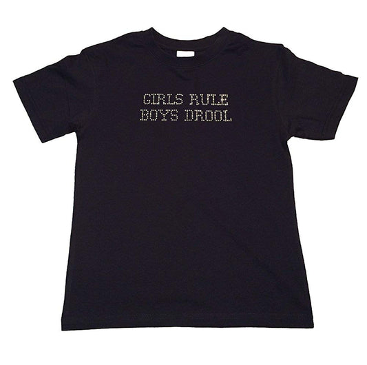 Girls Rhinestone T-Shirt " Girls Rule Boys Drool " Kids Size 3 to 14 Available