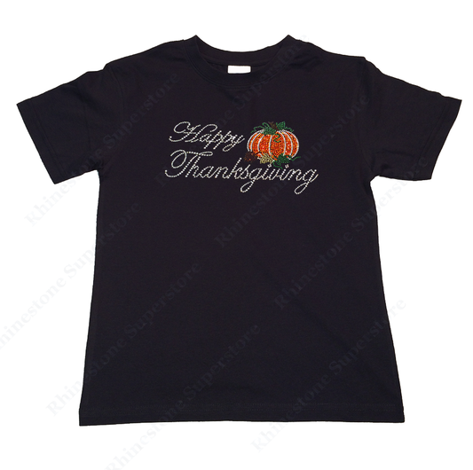 Girls Rhinestone T-Shirt " Happy Thanksgiving with Pumpkin " Kids Size 3 to 14 Available