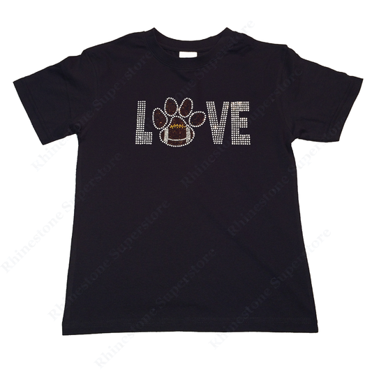 Girls Rhinestone T-Shirt " Love Football with Paw " Kids Size 3 to 14 Available, Sports Bling
