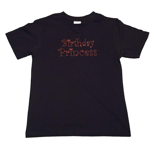 Girls Rhinestone T-Shirt " Pinkish Red Birthday Princess " Kids Size 3 to 14 Available