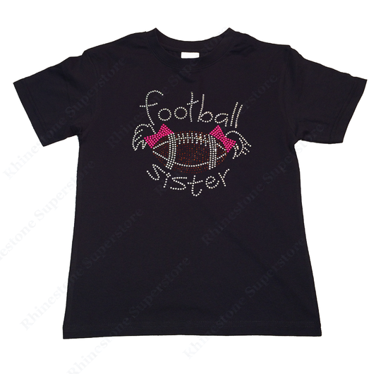 Girls Rhinestone T-Shirt " Football Sister with Pigtail " Kids Size 3 to 14 Available