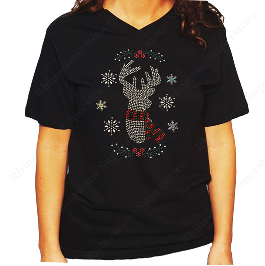 Women's / Unisex T-Shirt with Christmas Reindeer with Snowflakes in Rhinestones