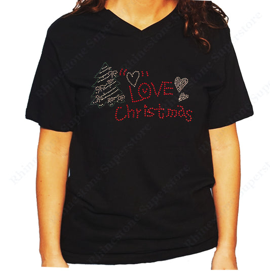 Women's / Unisex T-Shirt with Love Christmas with Tree in Rhinestones