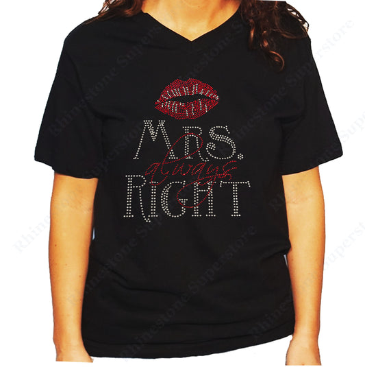Women's / Unisex T-Shirt with Mrs Always Right with Lips in Rhinestones