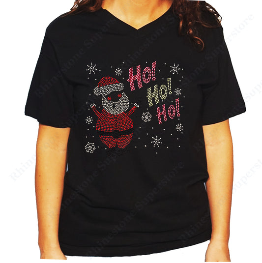 Women's / Unisex T-Shirt with Santa with Ho Ho Ho in Rhinestones
