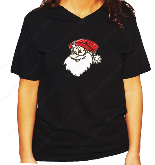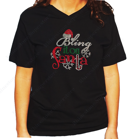 Women's / Unisex T-Shirt with Christmas Bling it on Santa in Rhinestones