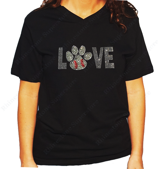 Women's / Unisex T-Shirt with Love Baseball Paw in Rhinestones