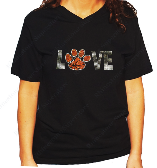 Women's / Unisex T-Shirt with Love Basketball Paw in Rhinestones