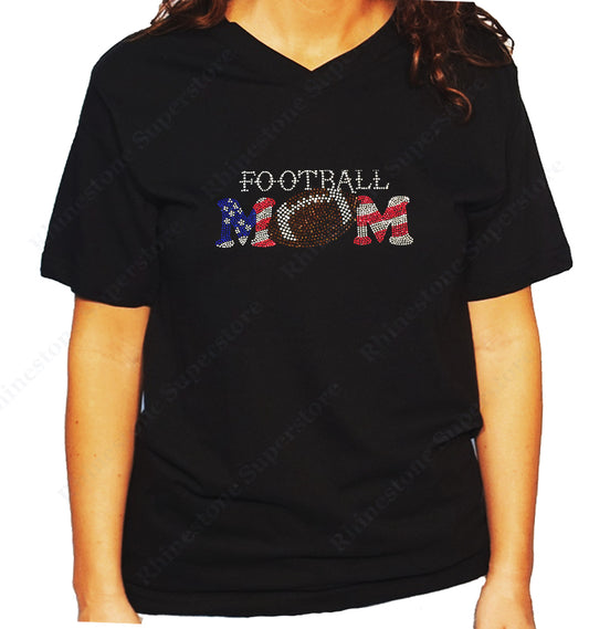 Women's / Unisex T-Shirt with Patriotic Football Mom in Rhinestones