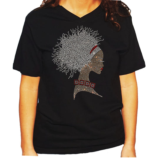 Women's / Unisex T-Shirt with Afro Dreds Locks Girl in Rhinestones