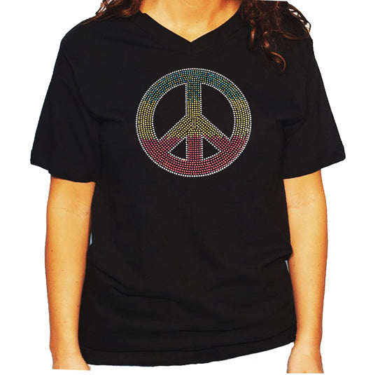 Women's / Unisex T-Shirt with Colorful Peace Sign in Rhinestones