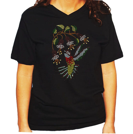 Women's / Unisex T-Shirt with Hummingbird with Flowers in Rhinestones