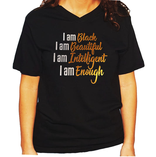 Women's / Unisex T-Shirt with I am Black I am Beautiful in Foil Print