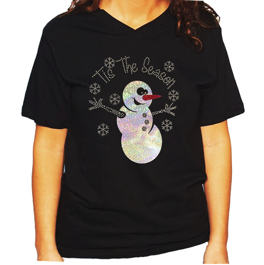 Women's / Unisex T-Shirt with It's the Season Snowman in Rhinestones