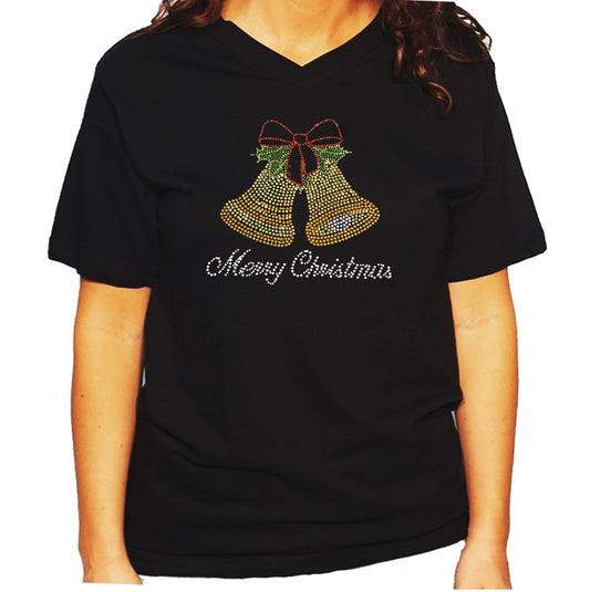 Women's / Unisex T-Shirt with Merry Christmas Bells in Rhinestones