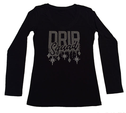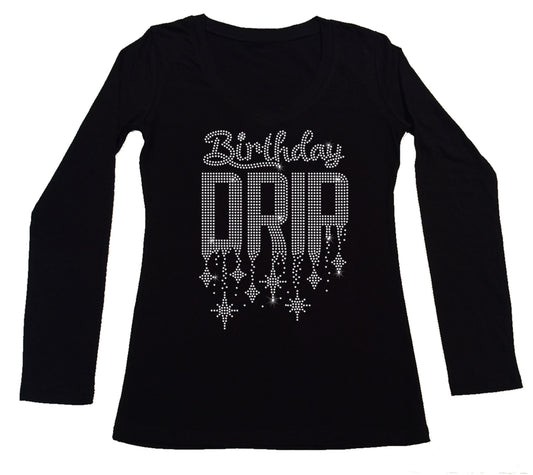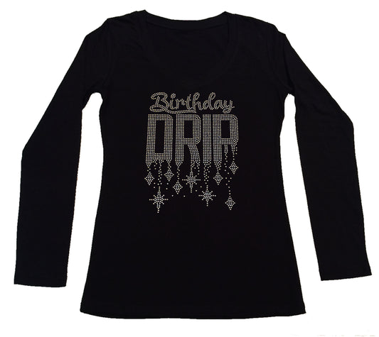 Women's Rhinestone Fitted Tight Snug Shirt Birthday Drip - Birthday Shirt